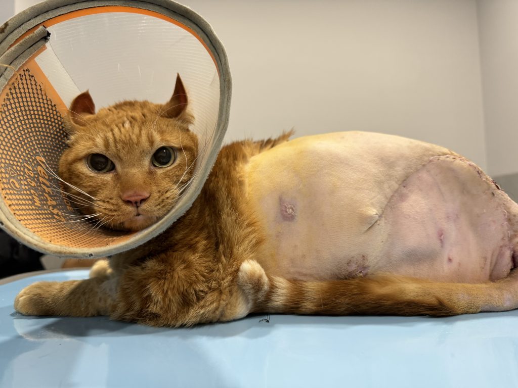 能不能切乾淨?我們沒辦法現在就給答案,需要將此區域的毛都剃光,在把傷口清創整理好,接著劃定預計要切除的手術範圍才能評估,而且貓超級兇猛,勢必得鎮靜才能進行。