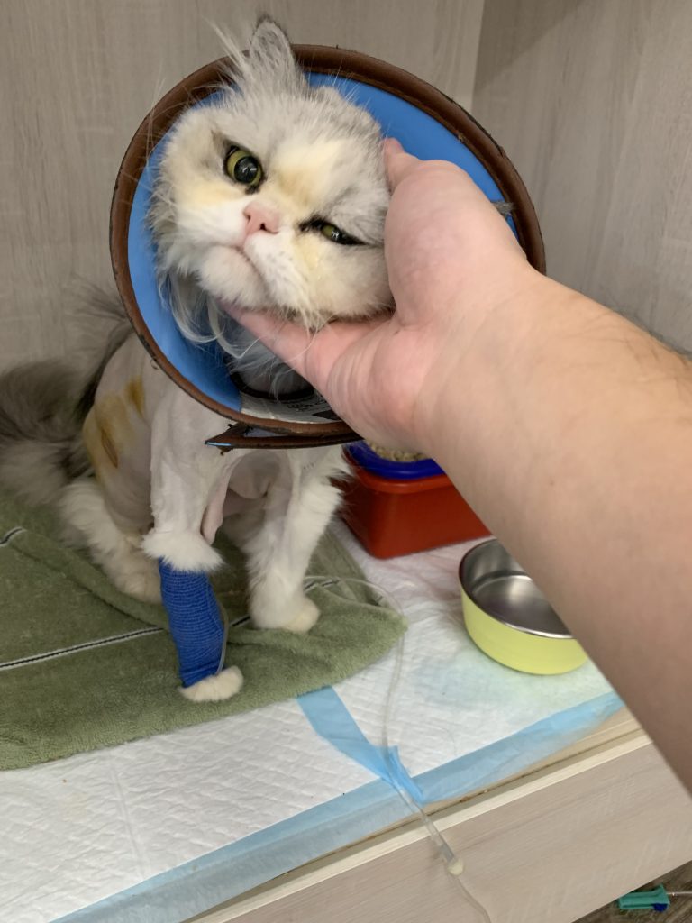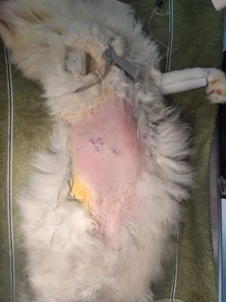照片中就是貓貓採樣完的樣子,可以看到幾針縫線留在身上。
