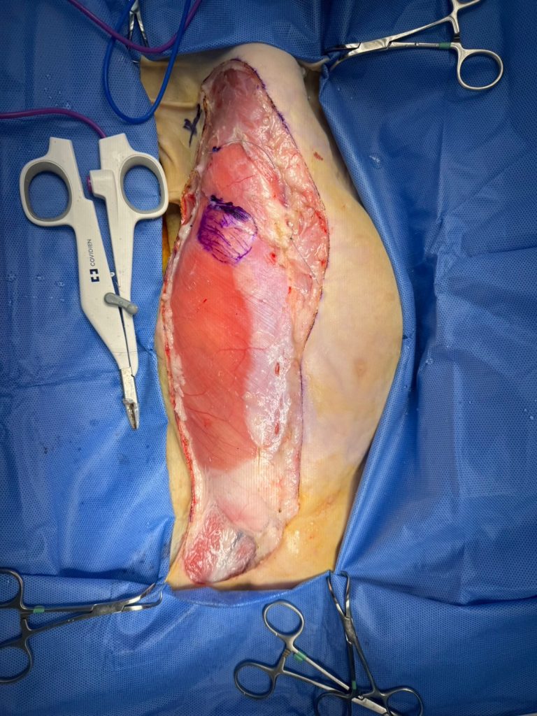 就像照片那樣,切除的過程中(從皮膚、皮下脂肪、一路抵達肌肉層)要幾乎看不到出血。